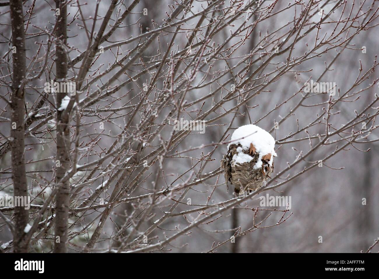Hornets Nest Hanging On A Tree Branch In The Snow Stock Photo Download Image Now Istock